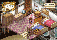 | 机や大釜、調合器具など錬金術士の必需品は今回も登場。インテリアは割と女の子らしい色合いでまとまっている。そして今回の目玉はなんといっても、前回まで設定としてしか存在しなかった、2階のお部屋がお目見えすること!「えっ、2階なんてあったの?」という人は『マリーのアトリエ』のマニュアルP.4を参照してみよう…(スタッフでも忘れてた人、多数…)。